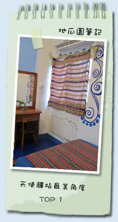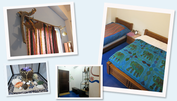 ● 房間設備 ● 雙人床1大床(軟式獨立筒床墊)、單人床1小床(硬式獨立筒床墊) 、獨立衛浴、分離式冷氣、 吹風機、茶壺、茶杯、沖泡飲品、室內拖鞋、wifi無線上網 ● 寢具規格 ● 獨立筒床墊、原木床架、竹炭枕、手工拼布薄被(冬季再加羽絨被)